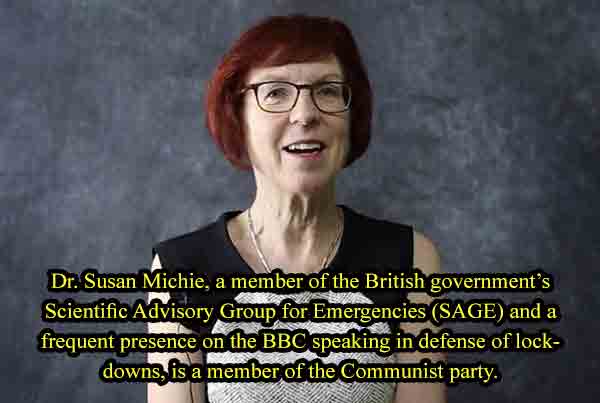 Last week the Daily Mail published two articles noting that Dr. Susan Michie, a member of the British government’s Scientific Advisory Group for Emergencies (SAGE) and a frequent presence on the BBC speaking in defense of lockdowns, is a member of the Communist party. The daughter of two Marxist scientists, Michie has been a party member for 40 years.