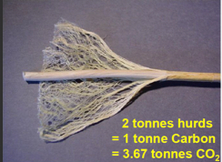 The stem has an outer bark that contains the long, tough bast fibers. They are similar in length to soft wood fibers and are very low in lignin content. Hemp rope, textiles and clothing is made from these fibers. The core contains the “hurds” or “Shives” (short fibers), similar to hard wood fibers and these are used for building particleboard (MDF) and pet bedding as well as plastics.