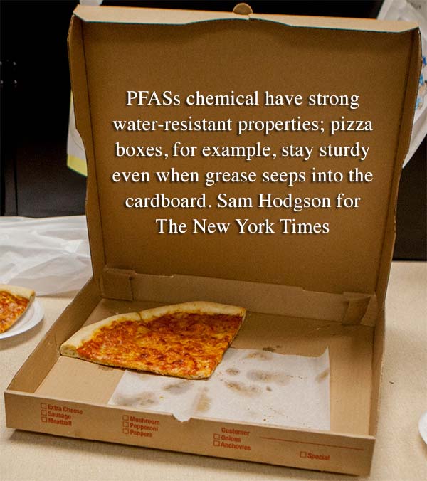 This class of chemicals is known for its durability. PFASs have strong water-resistant properties. Cardboard pizza boxes treated with the chemicals, for example, stay sturdy even when grease seeps into them.